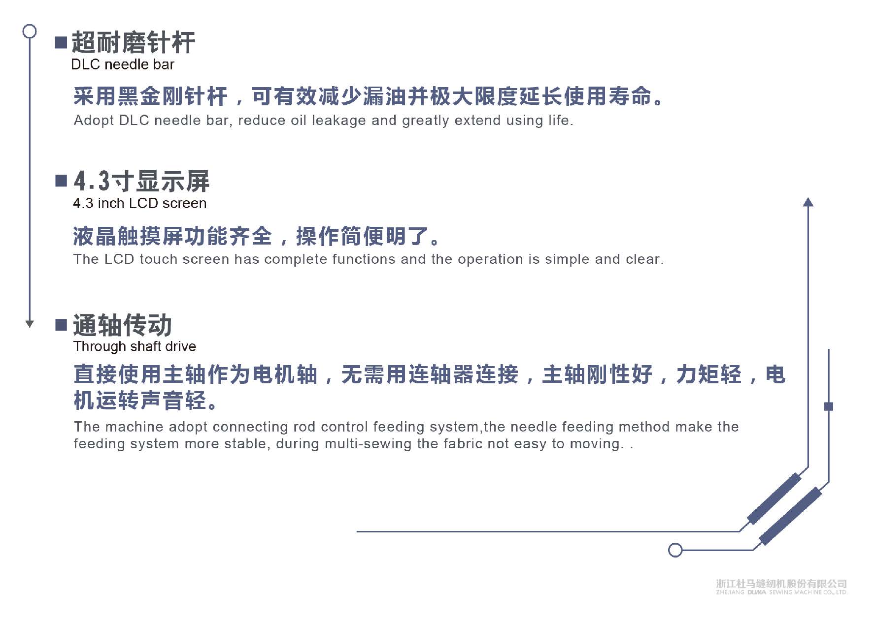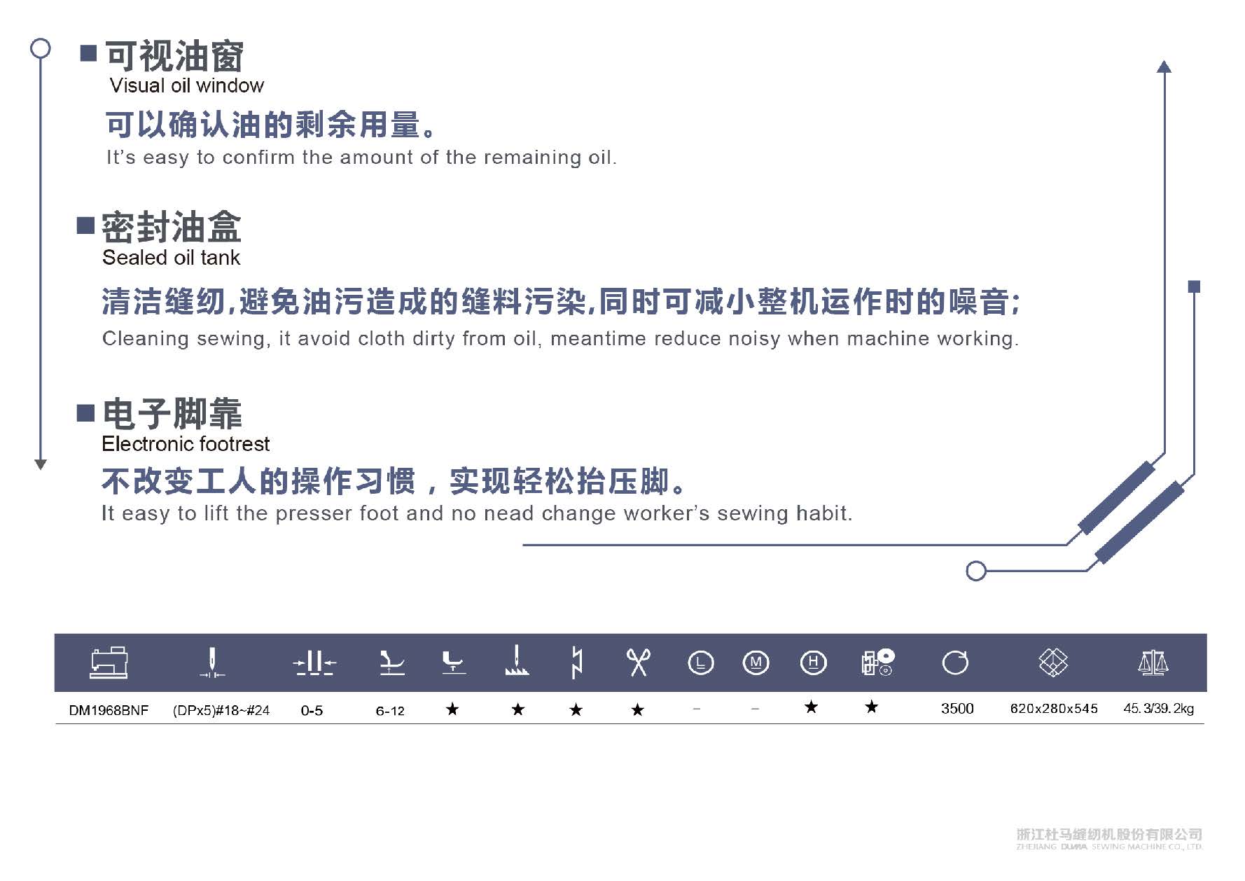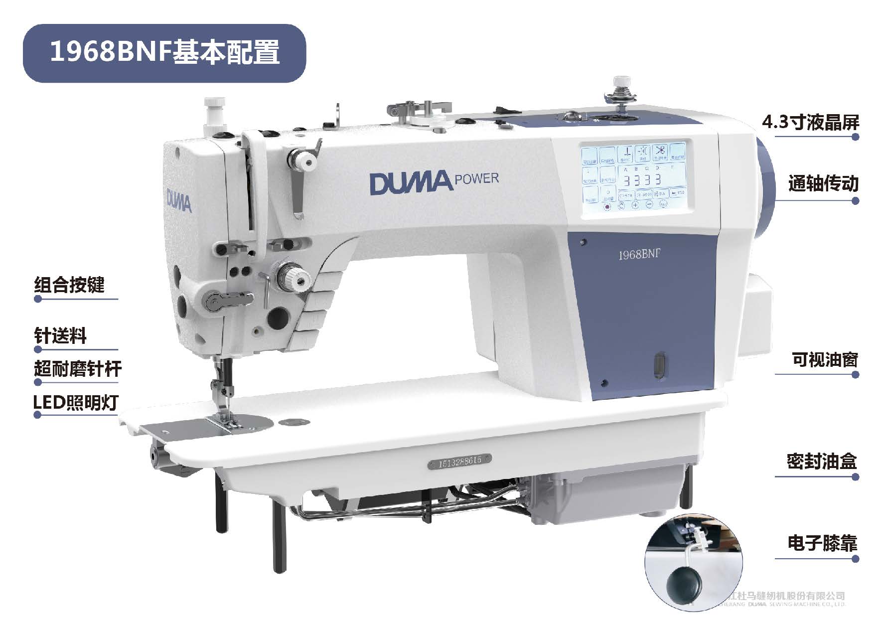 Intelligent Needle feed single needle lockstitch with double step motor driving